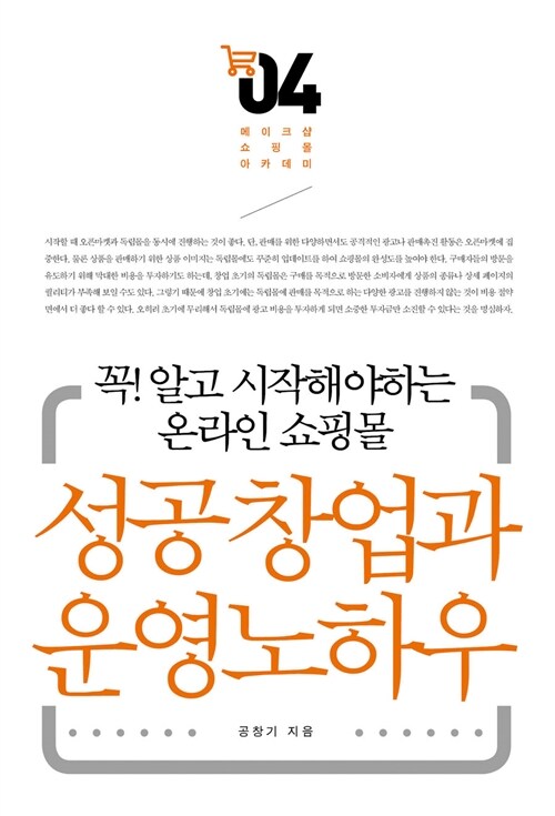 저자는 온라인 쇼핑몰을 준비하고 시작하려는 많은 분들을 위해 창업준비과정부터 효과적인 운영과 관리까지 세세하게 다루고자 노력하였다. '쇼핑몰의 올바른 접근과 이해', '온라인 쇼핑몰 창업 준비과정', '상품 등록 과정의 이해', '판매과정의 효과적인 운영과 관리' 등으로 구성되어 있다.